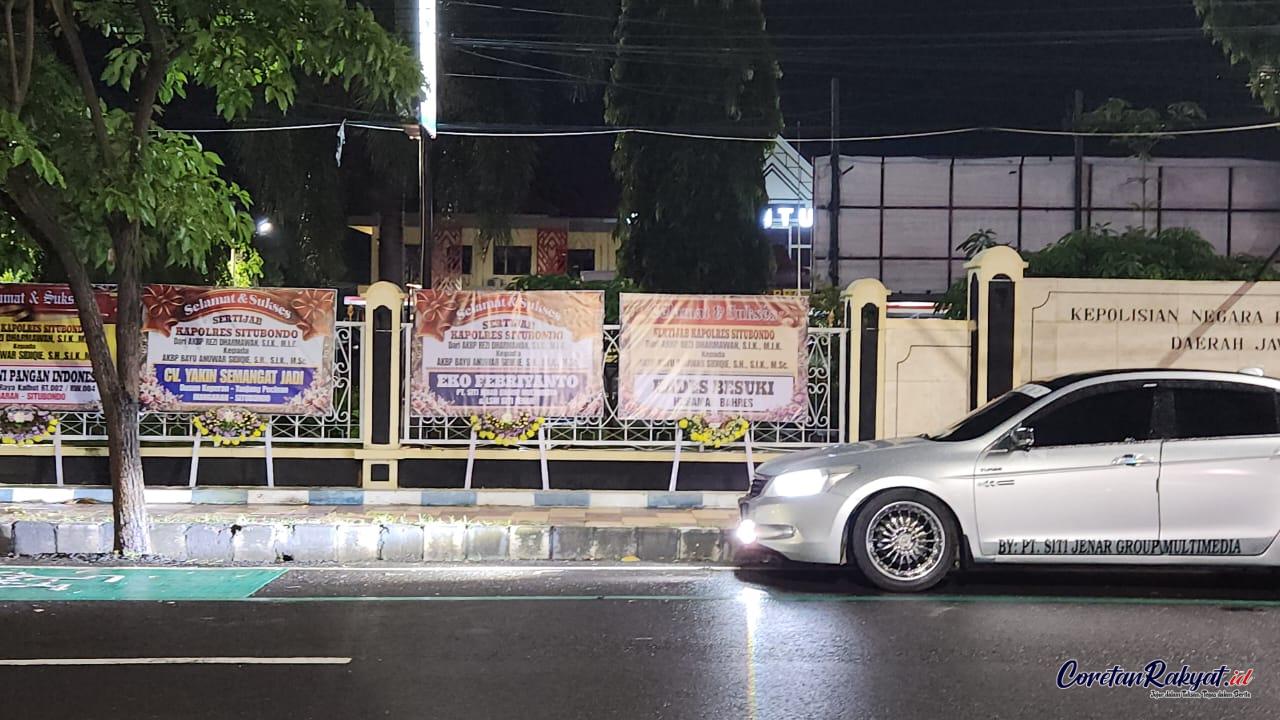 Sejak beberapa hari terakhir, halaman Markas Komando (Mako) Polres Situbondo tampak dipenuhi puluhan karangan bunga ucapan selamat atas Serah Terima Jabatan (Sertijab) Kapolres Situbondo. Karangan bunga tersebut berjajar rapi mulai dari gerbang pintu masuk, Lapangan Apel, depan gedung Mako, hingga gerbang pintu keluar Mapolres Situbondo. Pemandangan ini mencerminkan tingginya perhatian publik terhadap pergantian kepemimpinan di tubuh Polri wilayah Situbondo.