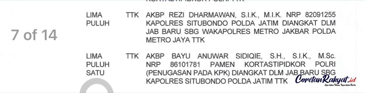 Sementara itu, posisi Kapolres Situbondo kini diemban oleh AKBP Bayu Anuar Sidiqie, S.H., M.Sc. dengan Nomor Registrasi Pokok (NRP) 86101781. Berdasarkan penelusuran tim investigasi awak media PT SITI JENAR GROUP MULTIMEDIA, AKBP Bayu merupakan perwira menengah Polri dengan latar belakang kuat di bidang penindakan tindak pidana korupsi.