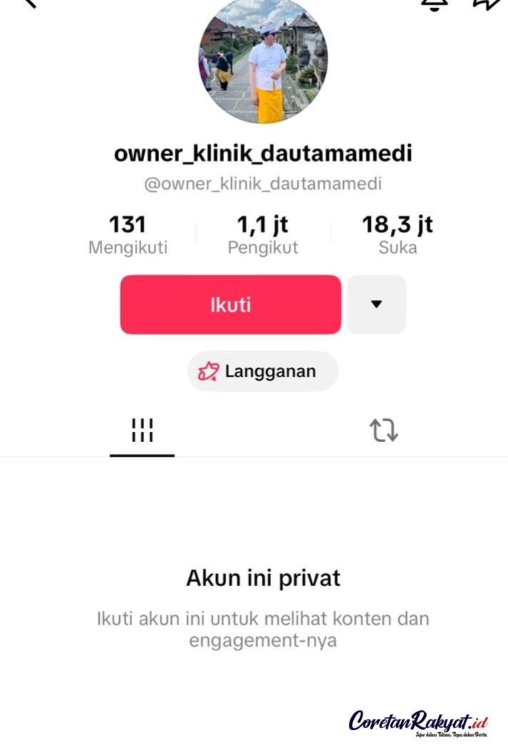 Praktis hanya menyisakan satu akun resmi mereka yaitu Klinik Dautama Medika yang hanya terapantau dengan kegiatan keseharian pemilik akun tersebut.