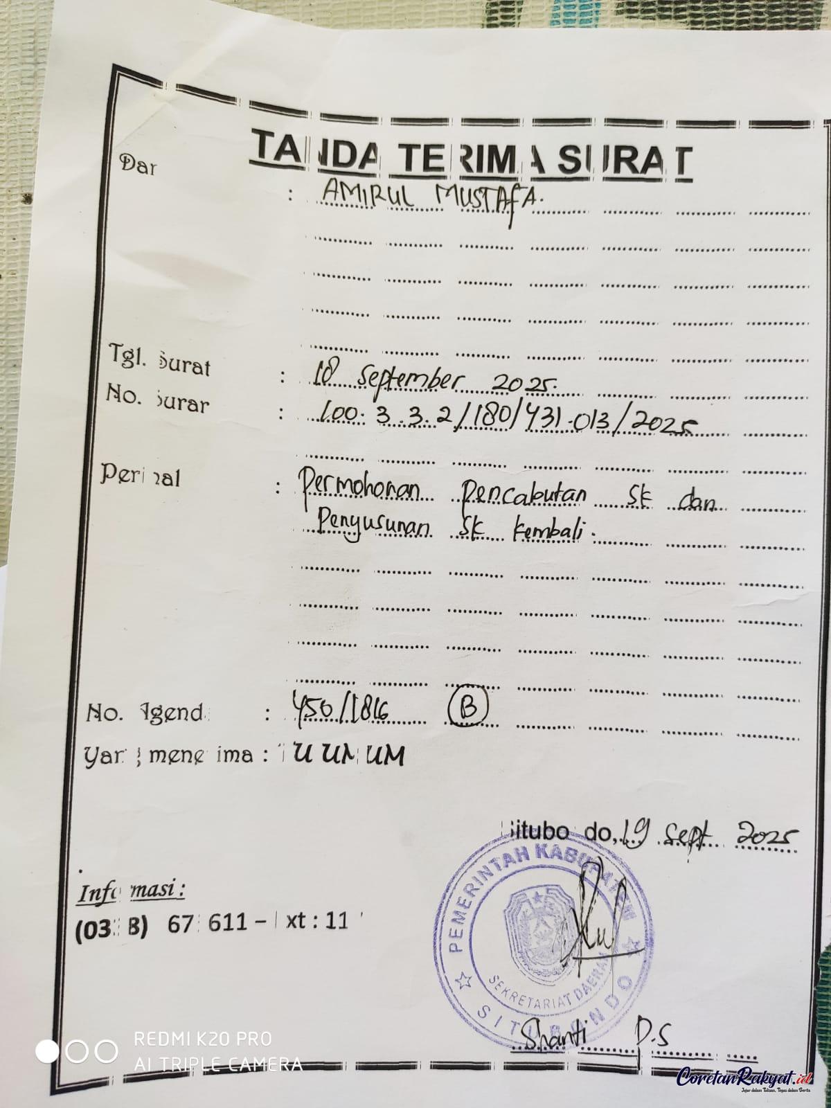 Keterangan Fhoto: tanda Terima surat Permohonan Keberatan kepada Bupati Situbondo