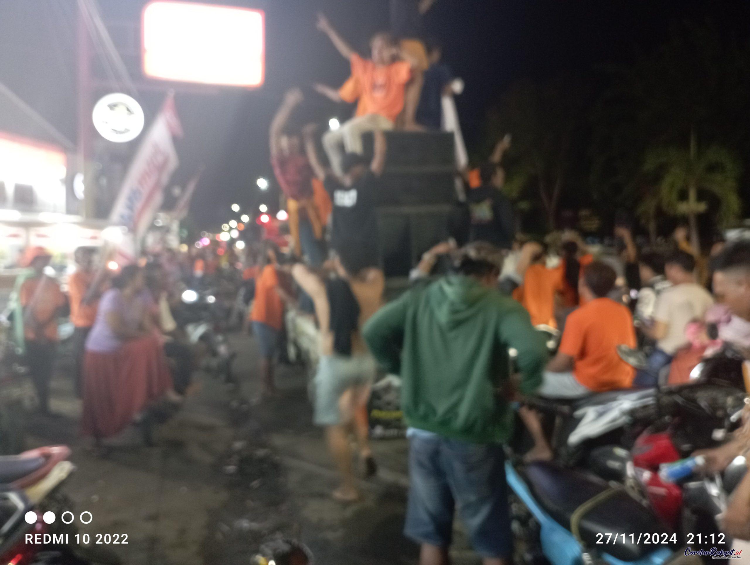 Ribuan warga dari berbagai kalangan tumpah ruah ke jalan-jalan utama kota untuk merayakan hasil kemenangan Versi Quick Count. Suara terompet, tabuhan musik tradisional, hingga kibaran bendera mewarnai malam penuh kegembiraan itu.