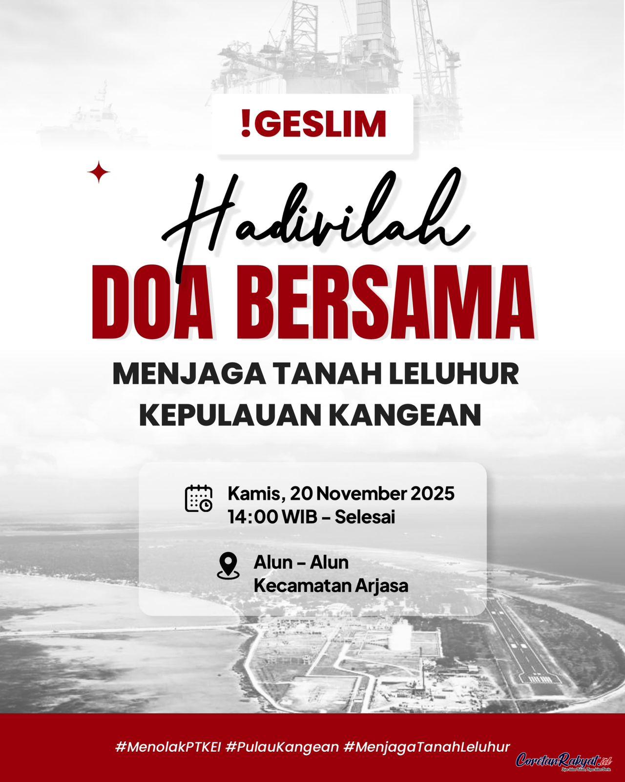 Munajat ini akan digelar pada Kamis, 20 November 2025, pukul 14.00 WIB, bertempat di Alun-Alun Kecamatan Arjasa. Kegiatan tersebut akan dihadiri oleh berbagai aliansi masyarakat, komunitas pemuda, tokoh agama, hingga ormas yang selama ini aktif menyuarakan aspirasi dan membela kepentingan masyarakat Kangean.