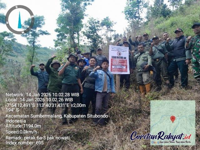 Coretanrakyat.id Sumber Malang Situbondo Jatim Rabu (14/01/2026) | Maraknya pemanfaatan kawasan hutan negara secara tidak sah di wilayah timur Kabupaten Situbondo mendapat respons serius dari Perum Perhutani Kesatuan Pemangkuan Hutan (KPH) Bondowoso. Melalui jajaran Polisi Kehutanan, Perhutani melaksanakan patroli gabungan sekaligus penertiban terhadap aktivitas garapan ilegal di kawasan Resort Pemangkuan Hutan (RPH) Sumber Malang, Bagian Kesatuan Pemangkuan Hutan (BKPH) Besuki, tepatnya di hutan pangkuan Desa Taman Kursi, Kecamatan Sumbermalang, Selasa (14/01/2026).