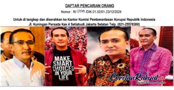 Coretanrakyat.id Jakarta Senin 9 Desember 2024: Terbaru Komisi Pemberantasan Korupsi (KPK) Kembali memasukkan nama tersangka HARUN alias Harun Masiku yang juga Politikus PDI Perjuangan dalam Daftar Pencarian Orang, karena dinilai Sangat tidak kooperatif setelah dilakukan tiga kali pemanggilan pemeriksaan sebagai tersangka.