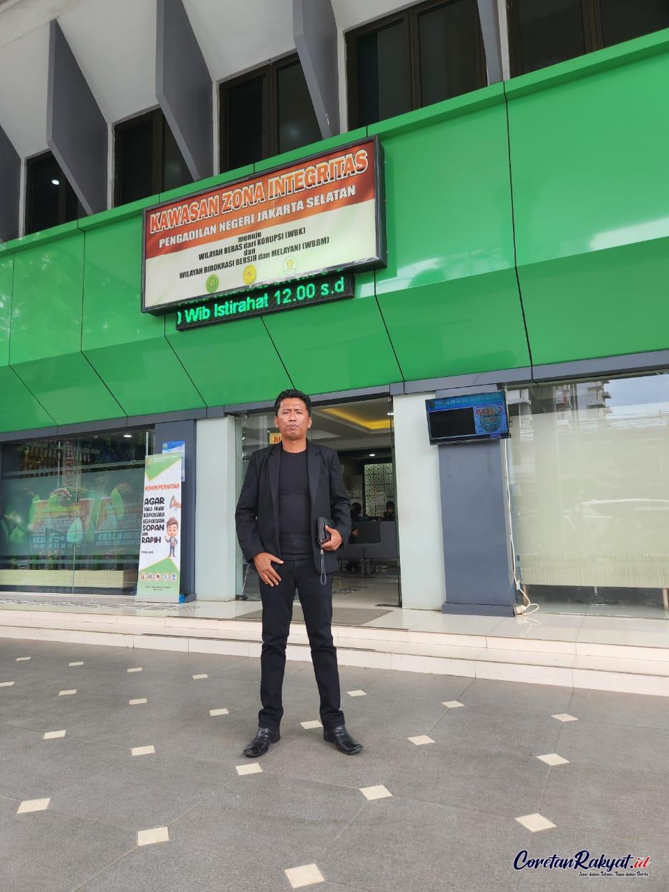 Keterangan Fhoto: Ketua Umum LSM SITI JENAR Eko Febrianto Saat Di PN JAKARTA SELATAN Beberapa Saat lalu Untuk Mengikuti Jalannya Sidang Praperadilan yang di Mohon Oleh Bupati Situbondo KARNA SUSWANDI