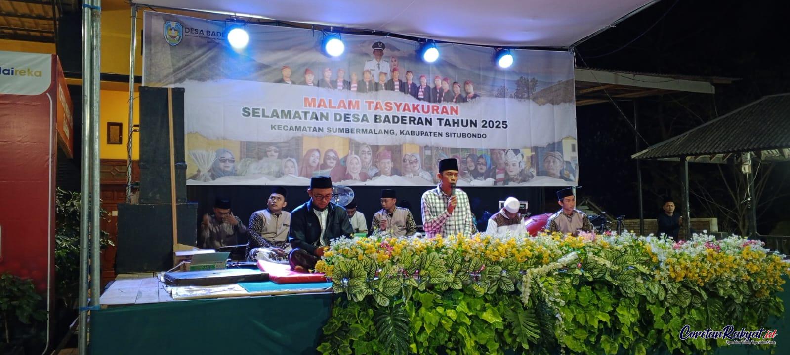 Coretanrakyat.id Sumbermalang, Situbondo – Kamis, 7 Agustus 2025 — Di tengah derasnya arus modernisasi, masyarakat Desa Baderan, Kecamatan Sumbermalang, Kabupaten Situbondo, tetap kokoh menjaga warisan budaya leluhur melalui pelaksanaan Selamatan Desa, tradisi tahunan yang berlangsung secara sakral dan khidmat selama tiga hari berturut-turut.